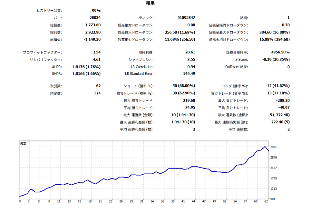 このEAはStrategyQuantXで作成されており、これらのインジケーターが複雑な市場状況下でも効果的に機能するよう最適化されています。