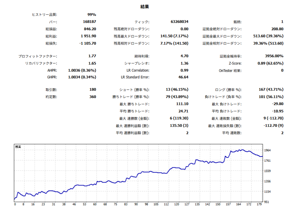 元は1時間足用に作ったものですが、なんと5分足での成績が異常に良い!