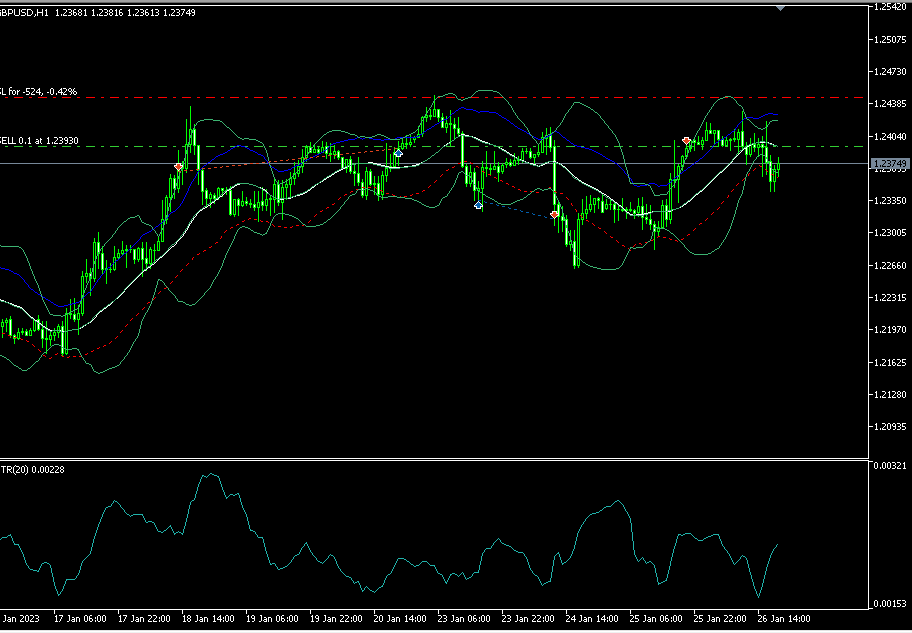 価格はBollinger Bandの中心線あたりに戻ると仮定し、少し下にリミット注文を置くことで、反発を狙います。 - 売り(ショート)