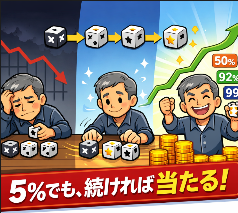その「5%」、14回チャレンジするだけで、1回以上成功する確率が50%を超えるって知っていましたか?