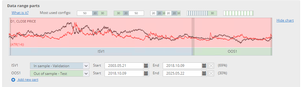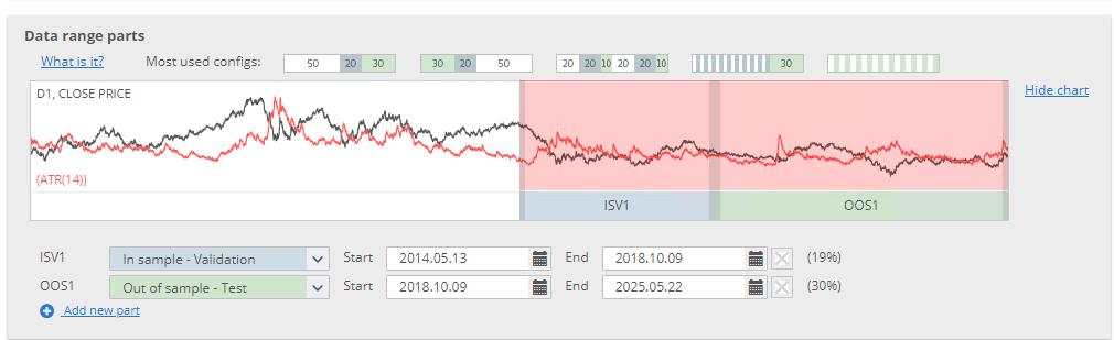 StrategyQuantX (SQX) は、EA(自動売買戦略)を構築・評価・進化させるための強力なツールです。その中でも「Data range parts」の設定は、戦略の信頼性を評価するうえで非常に重要な要素です。