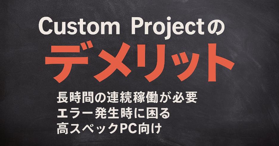 この記事では、特に初心者がつまずきやすいポイントを中心に、Custom Projectのデメリットをわかりやすくまとめました。