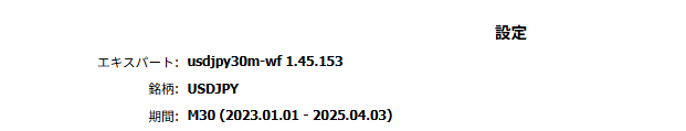 このEAは、USDJPYの30分足に対応し、トレンド方向に素直にエントリーしつつ、無駄なエントリーを3段階でカットするスマートな設計。
